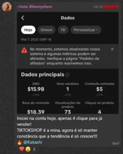Hoje, meu foco está totalmente no TikTok, a rede social mais promissora do momento. Em menos de 8 meses, alcancei milhões de visualizações e faturei 6 dígitos explorando canais dark na gringa e a TikTok Shop, tudo 100% orgânico. Aprendi a combinar o poder do algoritmo com estratégias de monetização, criando um método escalável e poderoso.